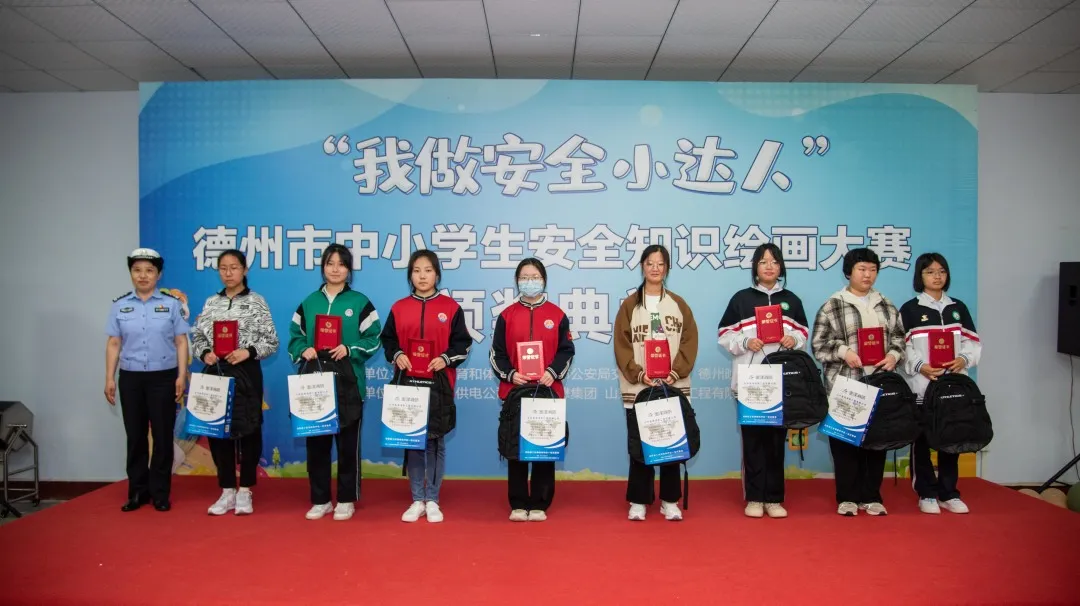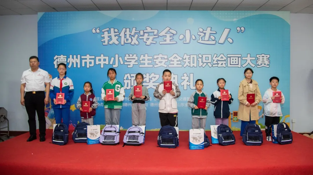 2023年5月27日上午,“我做安全小達人”德州市中小學生安全知識繪畫大賽活動頒獎典禮在德州通懋集團隆重舉行。出席本次典禮的有德州市公安局交通警察支隊黨委委員、副支隊長王東、德州市教育和體育局安全科科長歐杰、德州市公安局交通警察支隊宣傳教育科科長楊紅省、德州晚報社副社長單歆歆、德州通懋集團董事長蘇愛英、山東金澤消防工程有限公司董事長沙志勇。